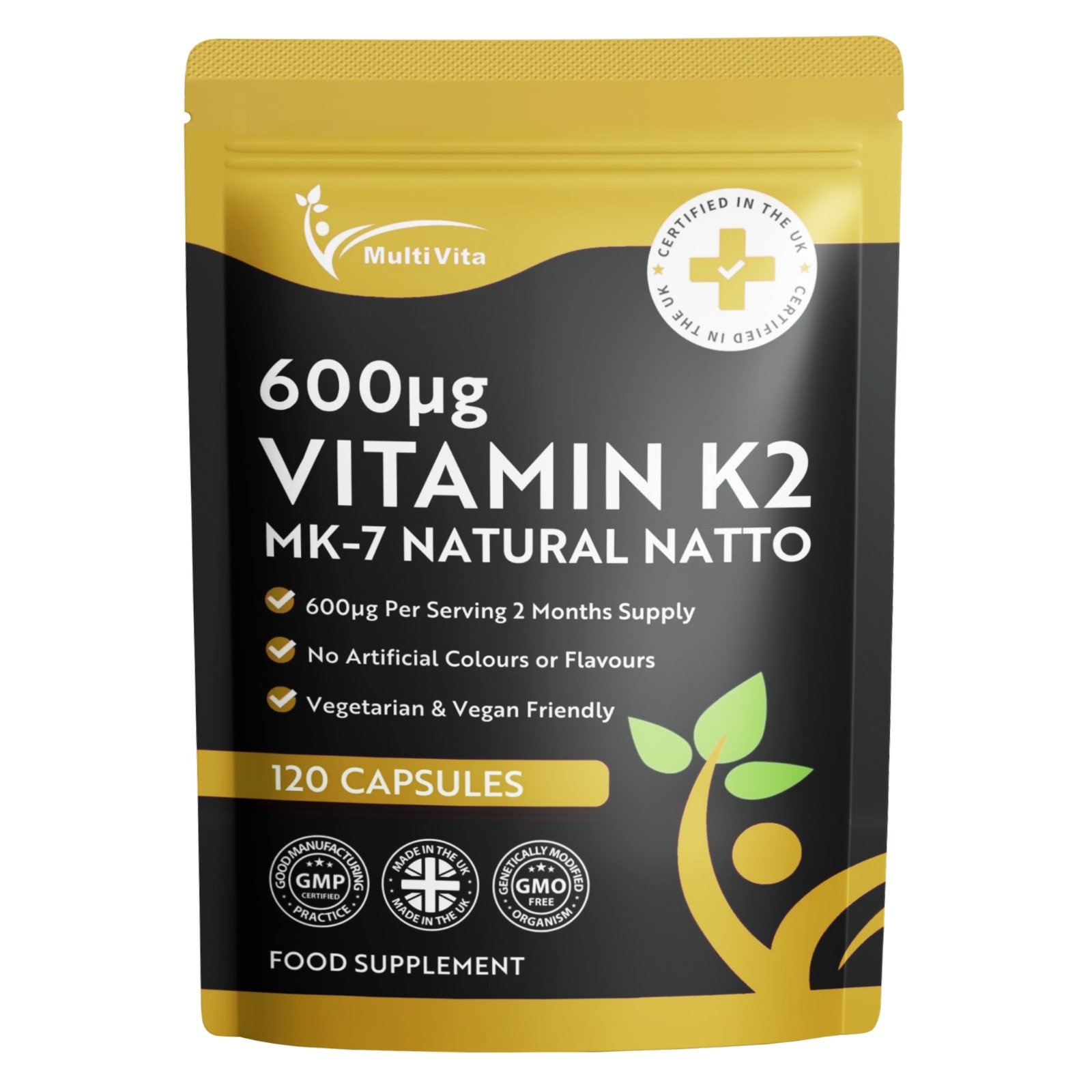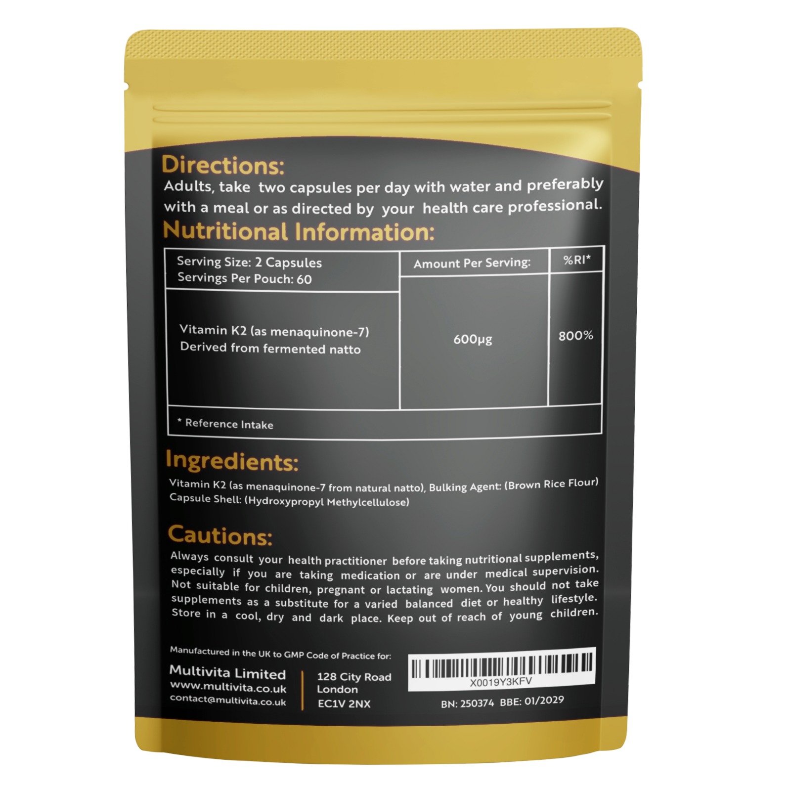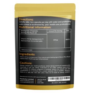 MK-7 (Menaquinone-7 from Natto) contains a highly biologically active form of Vitamin K2. Each 2 capsule serving provides 600µg Vitamin K2 and is supplied in an innovative letterbox friendly pouch. Suitable for vegetarians and vegans.